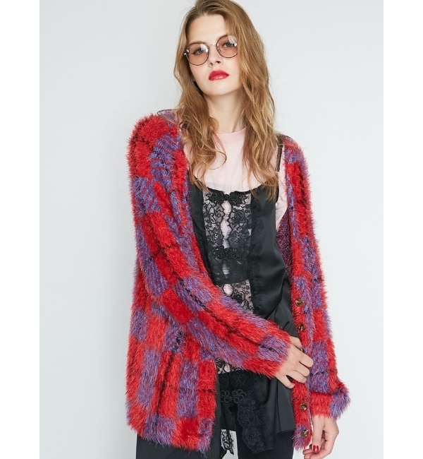 【送料無料】 ウォーム感たっぷりのフェザーヤーンで仕立てたチェックカーディガン。着こなしに差がつくjouetieらしい配色がポイントです。Tシャツやワンピース、様々なアイテムとのレイヤードが楽しめるコーディネートのアクセントにピッタリの一枚。 ジュエティ/jouetie トップス|カーディガン