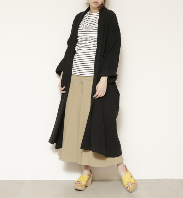 【送料無料】 いつもの装いにさらりと羽織るだけで大人な着こなしを演出してくれるガウンコート。ゆったりとしたシルエットにリネンの優しい風合いが雰囲気のある1着です。ワイドボトムとの相性も良いトレンドのロング丈で仕立てました。 ミューカ/mjuka ミューカ|アウター|その他