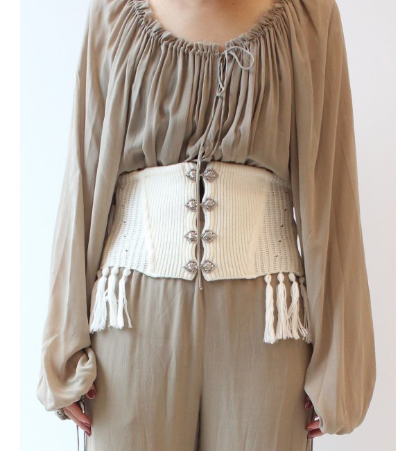 【送料無料】 ブランド名を“Spick and Span Noble”から“NOBLE”にリニューアル!【2017AW】 NOBLE取り入れるだけで旬な着こなしが完成するコルセット。シルバーの金具や大胆なフリンジで存在感がありながらも、ニット素材で仕立てることで大人の女性にふさわしい品の良さのキープしてくれます。【STAIR(ステア)】 2016AWより”現代女性に程よい遊びと頑張りすぎない女性らしさ”をコンセプトにスタートしたいま注目のジャパニーズブランド。オリジナルマスキュリン、モダンフェミニティをベースにそれぞれの価値、高揚感を感じるためのリアルクローズを展開しています。Instagram:@stair_official※こちらの商品は、NOBLEでの取り扱いになります。直接店舗へお問い合わせの際はNOBLE店舗へお願い致します。※店頭や屋外での撮影画像は、光の当たり具合で色味が違って見える場合があります。 商品の色味は、スタジオ撮影の画像をご参照ください。モデルサイズ:身長:167cm バスト:77cm ウェスト:56cm ヒップ:80cm 着用サイズ:S本体:ドライクリーニング スピック&スパン/Spick & Span NOBLE|小物|その他