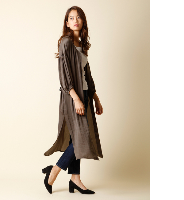 【送料無料】 微光沢感のある素材がレディライクな印象を漂わせるガウンワンピースです。付属のベロアリボンをウエストにあしらえば気になりがちなウエストをマークしつつ、アクセントとシーズン感を取り入れた着こなしが完成します。ワンピースとしてはもちろん、羽織のガウンとしても着回せる優れものです。・裏地なし ・ベルト取り外し可 ・ポケット付き ・水洗い可 エフデーゼ/EFDEISEE ef-de|ワンピース|ワンピース