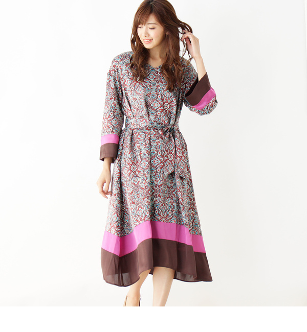 【送料無料】 ほんのりレトロ感漂うロシアンプリントのワンピース。個性的な柄とストライプのコンビが絶妙。リボンのアクセントも魅力的な1枚でおしゃれにきまるアイテムです。ペチコート付きなので透け感を気にせず着ていただけます。※複数枚のセット商品のため、洗濯表示・注意事項等は、本製品で御確認下さい。モデル情報:身長165cm B82 W58 H84 着用サイズ:02(M)店舗へのお問い合わせ商品番号:511-53032主に冬に着用いただける商品です。 中国製 ハッシュアッシュ/HusHusH HusHusH|ワンピース|ワンピース